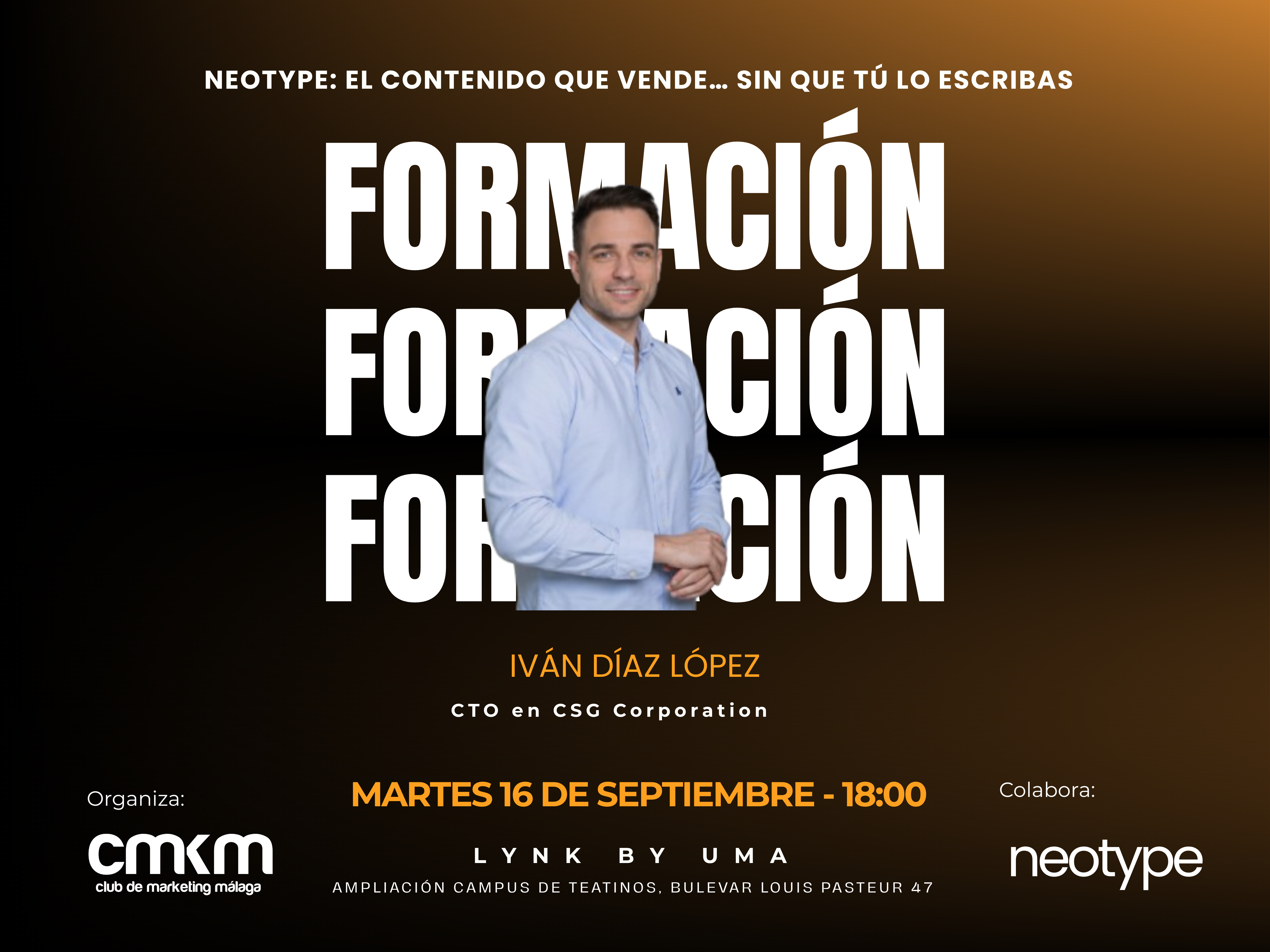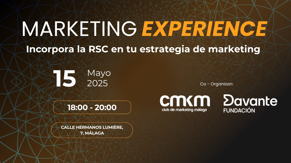 Fundación Davante Calle hermanos lumière, 7, Málaga, Málaga, SpainMarketing Experience con Fundación Davante: Incorpora la RSC en tu estrategia de marketing El próximo Jueves 15 de mayo de 18:00 – 20:00 h en Fundación Davante (Calle Hermanos Lumière, 7 – Málaga) El Club de Marketing Málaga y Fundación Davante te invitan a una experiencia exclusiva donde conocerás cómo integrar la Responsabilidad Social Corporativa en tu estrategia empresarial. ✅ Charla sobre marketing social✅ Presentaciones de entidades sociales malagueñas✅ Networking con propósito✅ Degustación saludable elaborada por estudiantes de Dietética Solo 10 plazas para Socios Profesionales y Socios Business del Club (gratuito con tu código de Socio) Se asignan por orden de solicitud y habrá lista de espera en caso de aforo completo 📲 Reserva tu plaza: ➡ WhatsApp: https://wa.me/34627894123 ➡ Email: info@cmarketingmalaga.org 📩 Tus datos se compartirán con Fundación Davante, coorganizadora del evento.